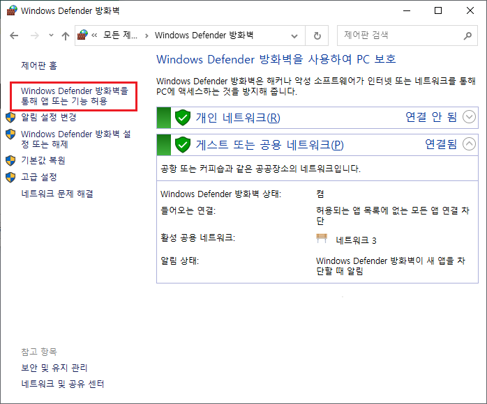 위 정보에 대한 저장은 방화벽(디펜더)쪽에 저장된다.