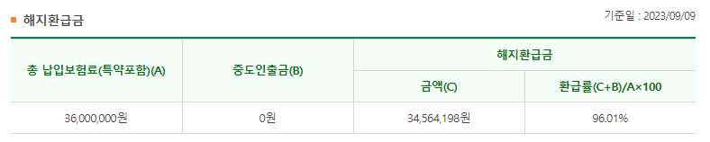 예상 해지 환금금 조회를 한번 해봤더니 96.01%다.. ㅠ^ㅠ