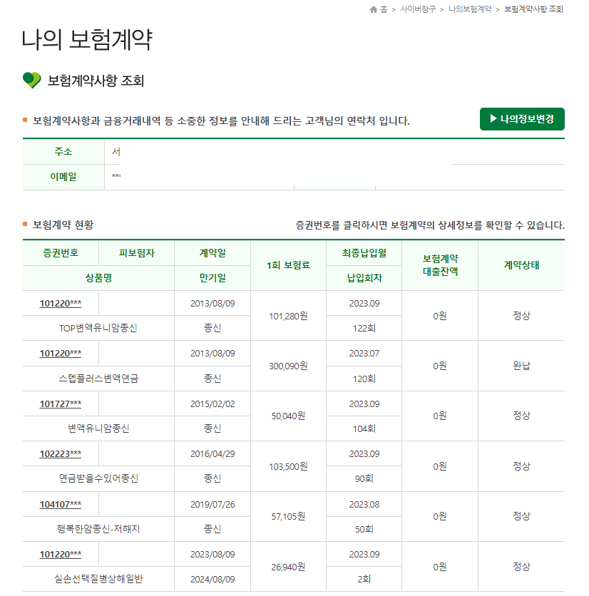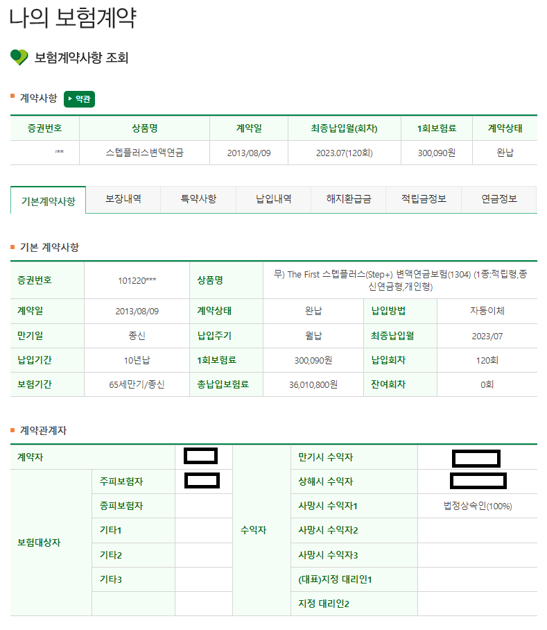 자세히 보니.. 뭐 딱히 뿌듯한 정보는 없고.. 그냥 납입보험료 총액은 3600만 정도라는 것 정도...