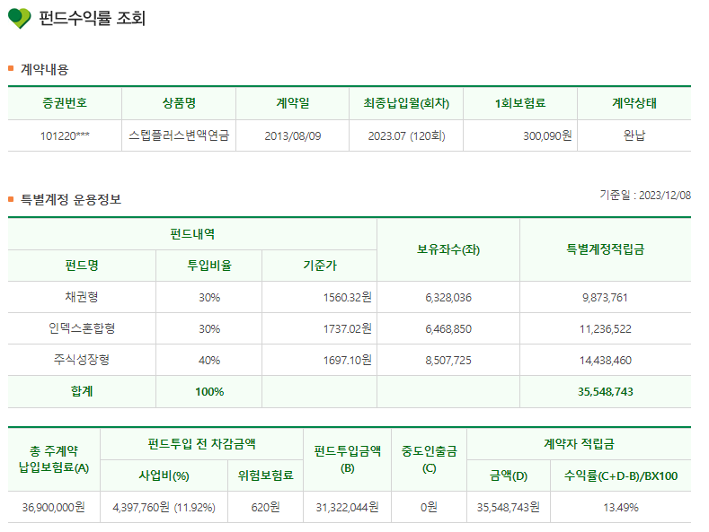 | [23.11.17] DB생명 스텝플러스변액연금 추가납입 2회 완료 후 (0) | 2023.11.17 |
