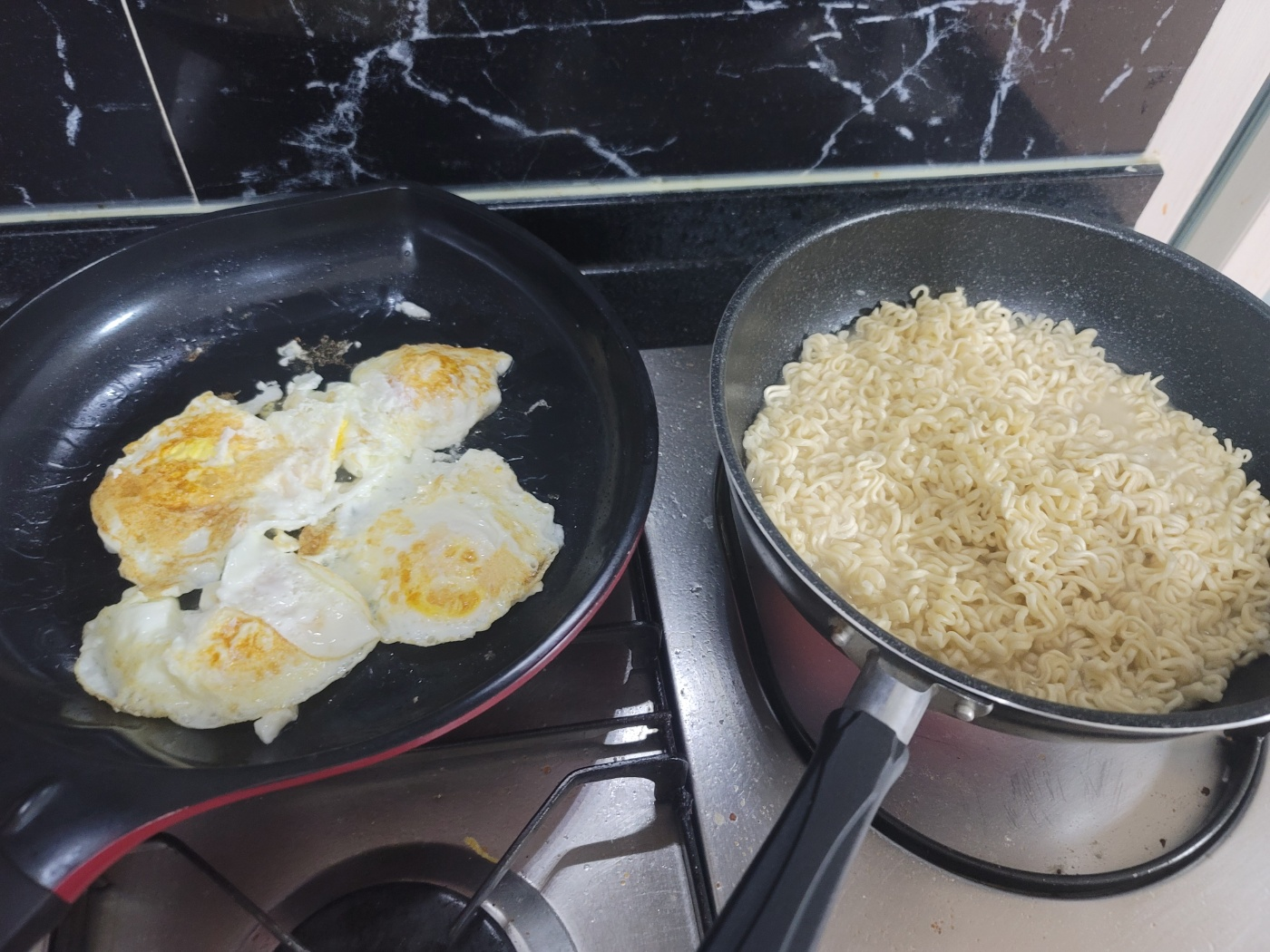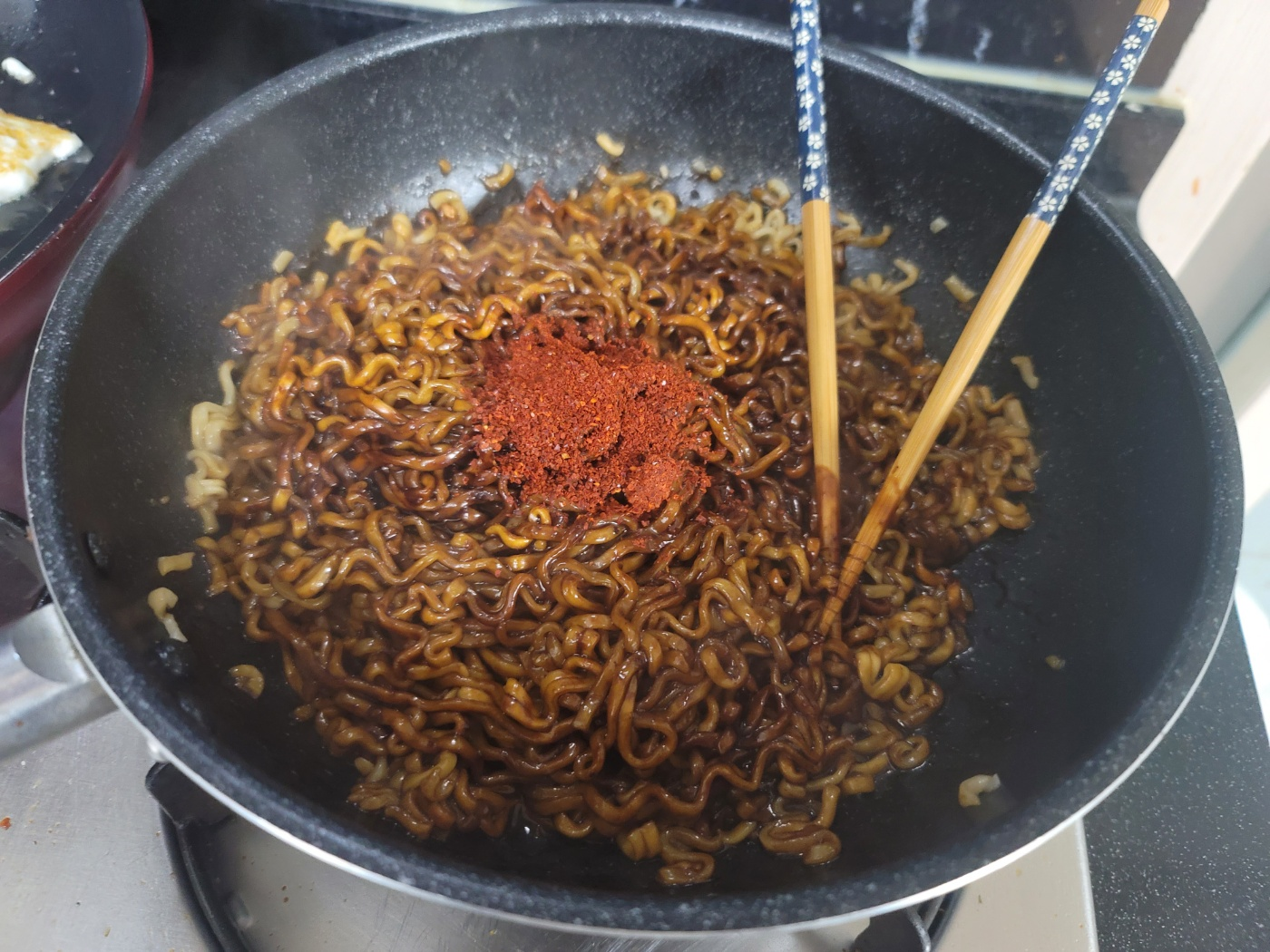 거의 익어 갈 때쯤... 계란후라이... 짜장엔 후라이지...