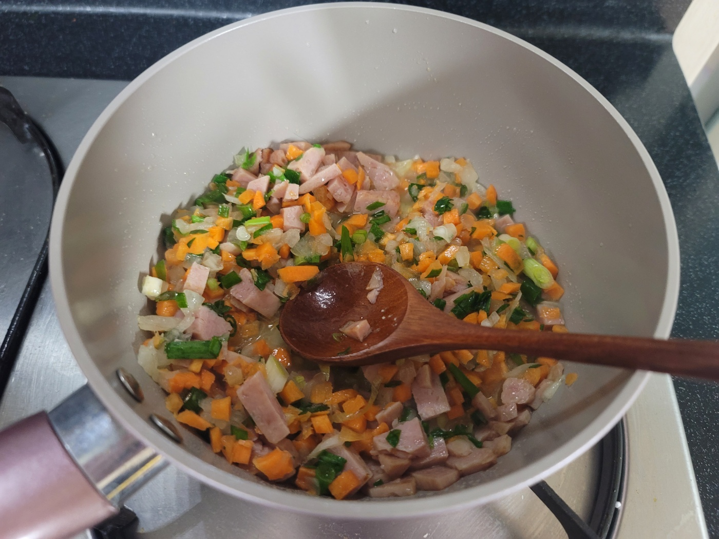 고기는 쉽게 물렁물렁해지는 스팸으로 대체했고, 야채는 모듬사온걸로 대체했다.