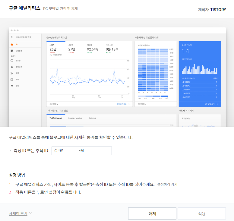 누군가가 티스토리 쓰고 있으면 구글 애널리틱스 뭐 연동하래서 했지 뭐야??