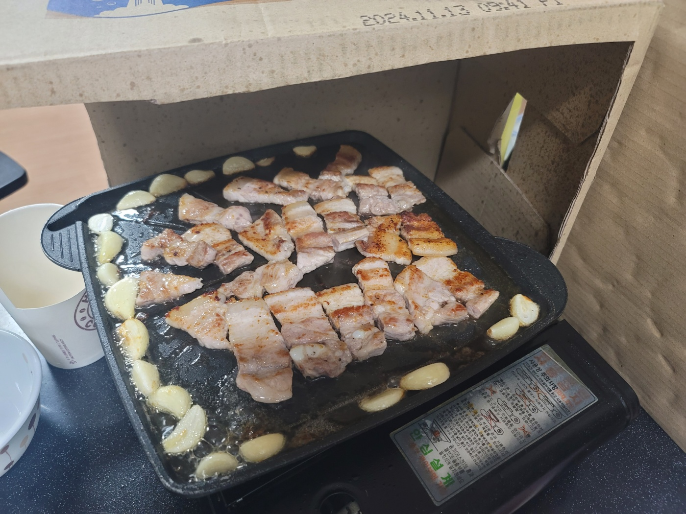 그리고 기름 튈까봐 방지용으로 박스를.... 활용해본다..