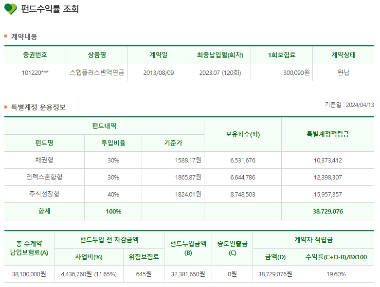 | [24.02.08] DB생명 스텝플러스변액연금 추가납입 완료 (0) | 2024.02.08 |