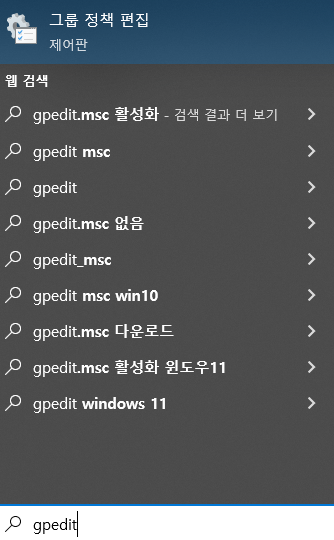 윈도우 버튼 누르고, gpedit 라고 입력하면 '그룹정책편집'이라는 것을 들어감