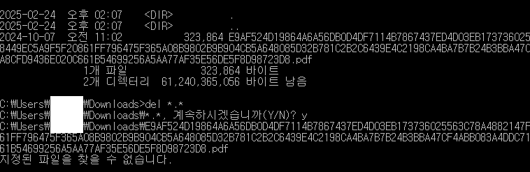 보시다시피 이렇게 긴 파일이 있고.. 지우려고 해도 반응이 없었고..
